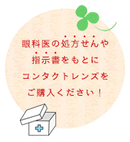 コンタクトレンズは、薬機法で高度管理医療機器に指定されております。昨今、ネット通販で簡単に購入できるようになりましたが、当店では、みなさまにご使用方法をしっかりとご理解していただいたうえでご購入頂きたいと考えております。 コンタクトレンズは、お手入れ方法及び装用環境により重度な疾患に繋がる製品として位置付けられております。しかしながら日本では、アメリカのように「医師の処方に従った販売」が法制化されていない状態が続いております。当店では「安全にご使用いただくためのお約束」をご提示させていただき、ご了承いただいたお客様に限り、販売させていただいております。 |